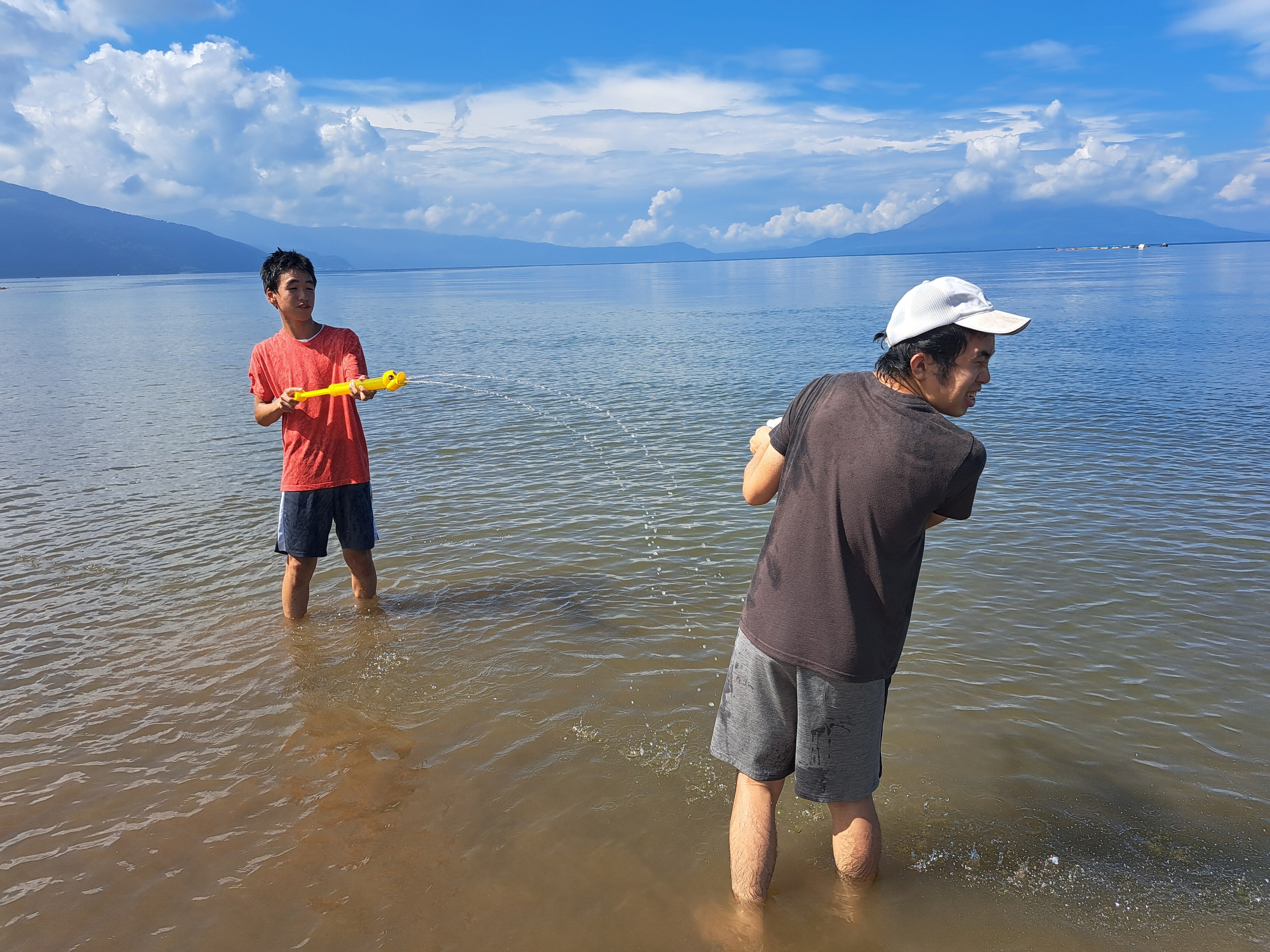 水遊びでは夢中になってしまい、気づけば全身びしょびしょに…😝