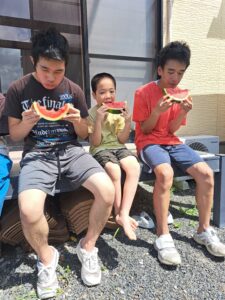 遊びを満喫した後は、ドリンクを飲んで、美味しいスイカ🍉も食べて、火照った体もクールダウン…☺️