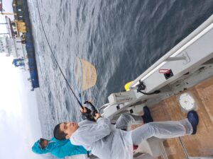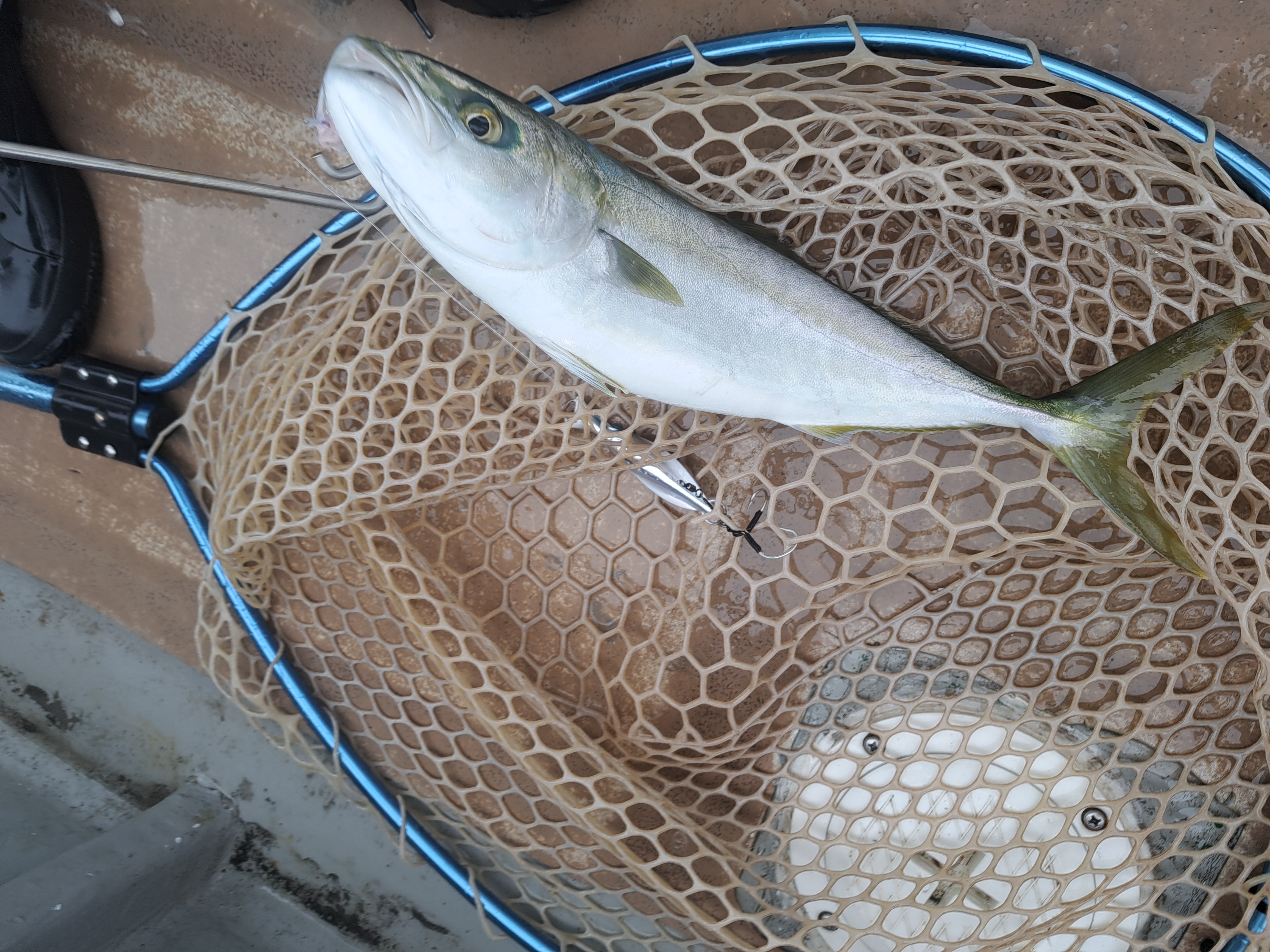 あせらず、慎重に巻きあげると…50㎝のイナダをゲット😊