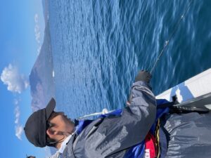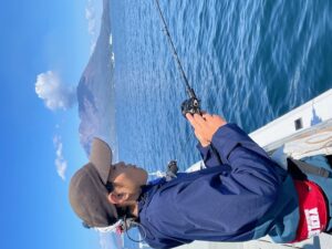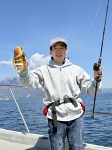 それでも、船長の言葉を思い出しながら、巻き続けていると、突然ズンッと重みが!